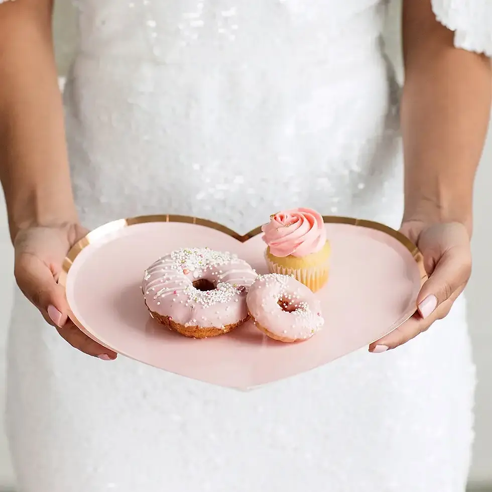 Large Heart Disposable Paper Party Plates - Rose Gold